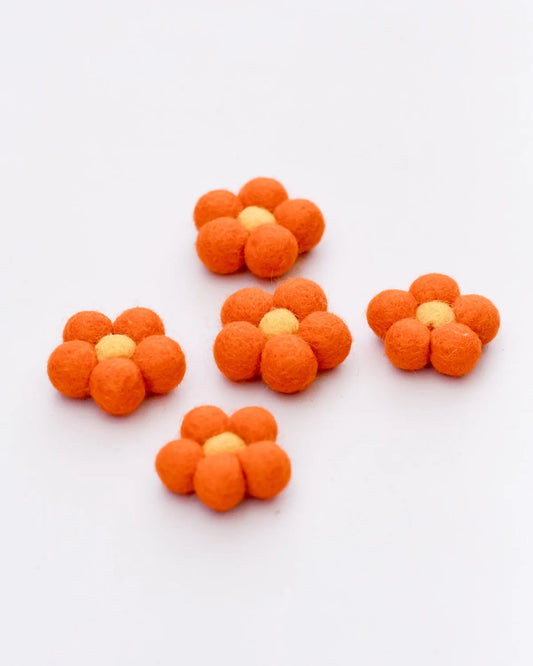Felt Daisy Flowers (Orange Coloured) - 5 Flowers
