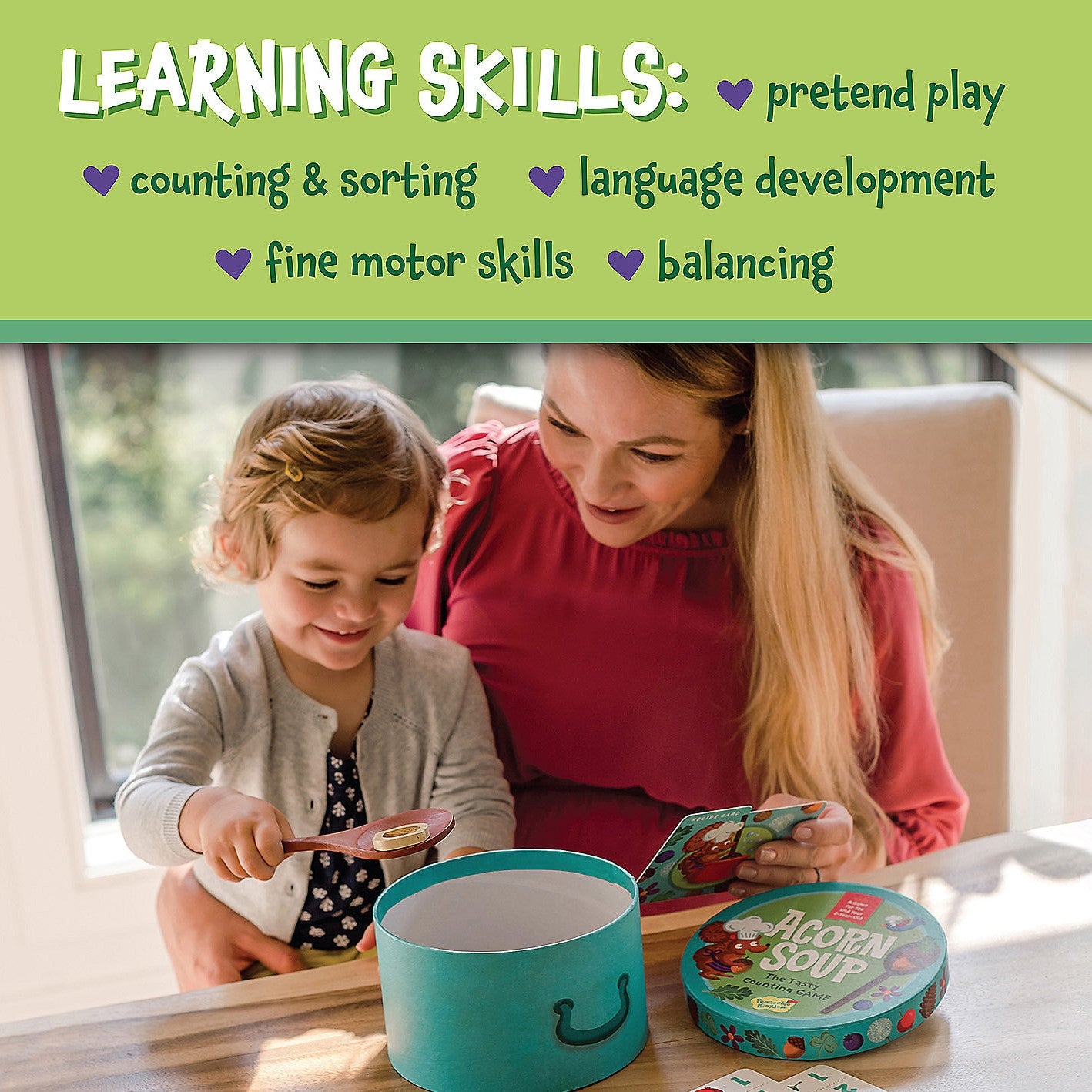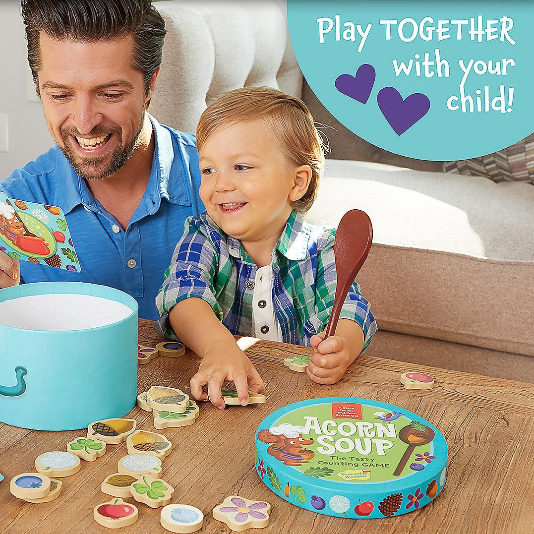 Simple recipe cards teach toddlers to identify the ingredients and count as they cook. Mix, stir, eat and play together! Counting, pretend play, sorting, fine-motor skills are benefits of this fun, interactive game!