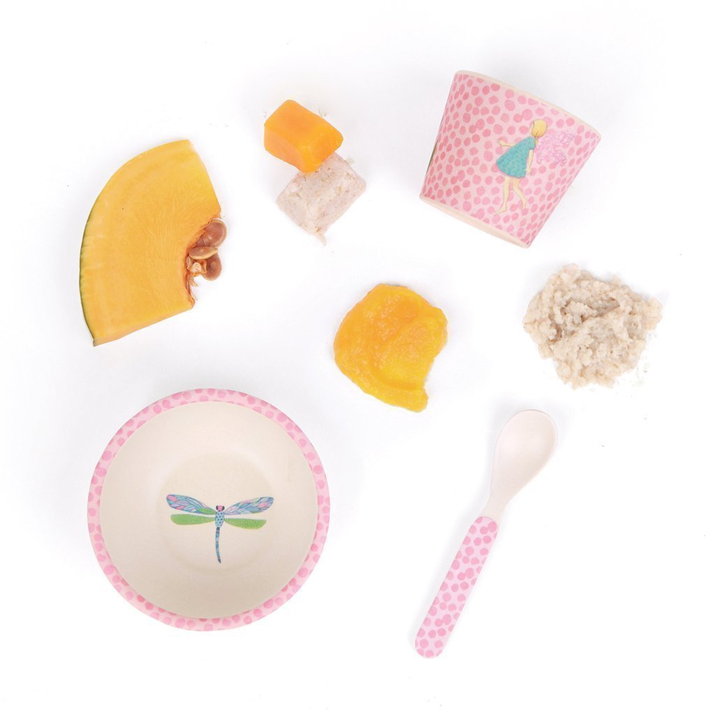 Love Mae weiß, wie verträumte Pastelltöne und magische Kreaturen das Herz kleiner Damen höher schlagen lassen können. Lassen Sie also Sternenstaub auf Ihre kleine Tinkerbell fallen, während sie mit unserem Feen-Set beim Abendessen Geschichten aus fantastischen Welten verschlingt.