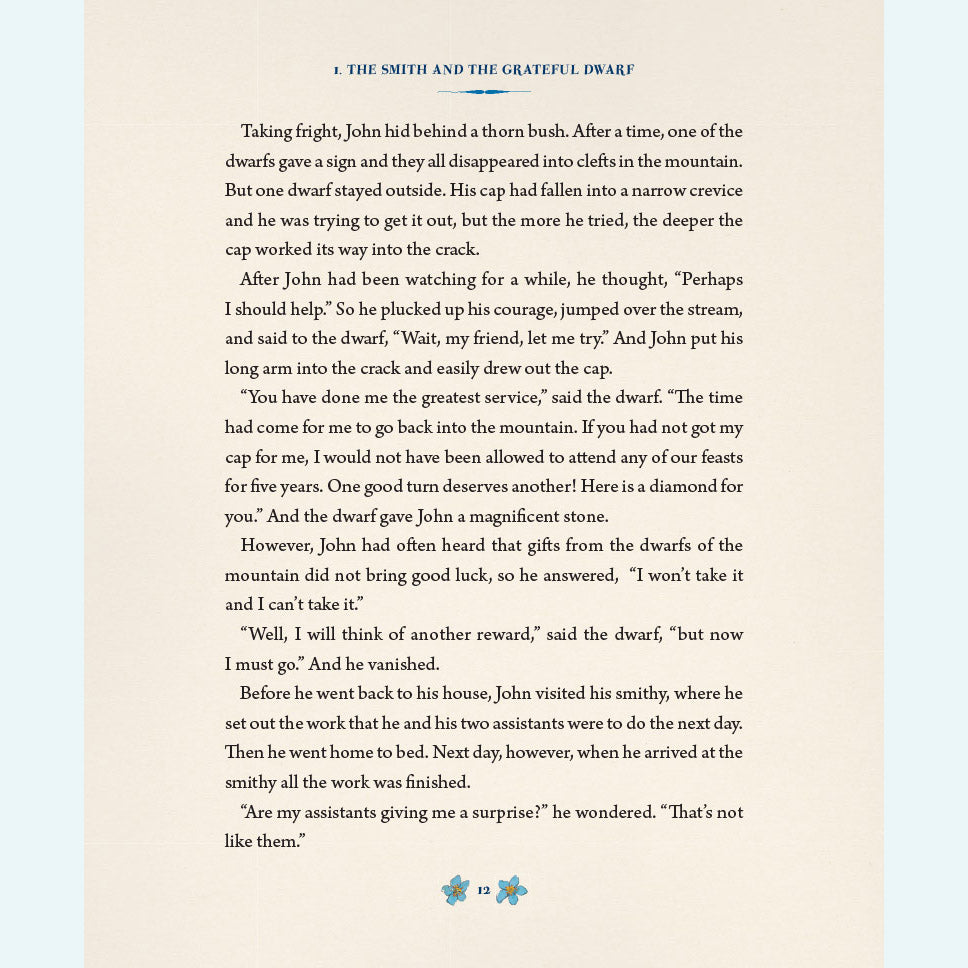 Beliebte Geschichten wie Kate Crackernuts, Tom Tit Tot und The Griffin nehmen die Leser mit auf eine Reise durch Europa, während sie schneebedeckte Berge erklimmen, tief unter die Erde vordringen und wunderschöne Paläste bestaunen.