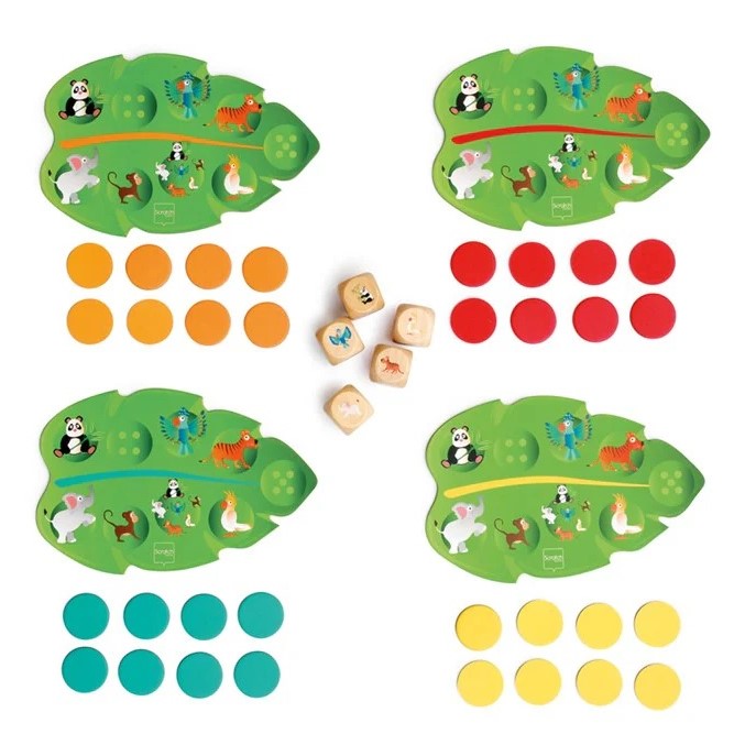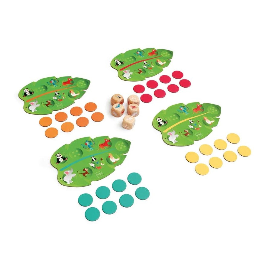 The dice feature pictures of fun jungle animals.