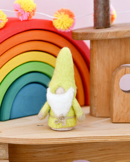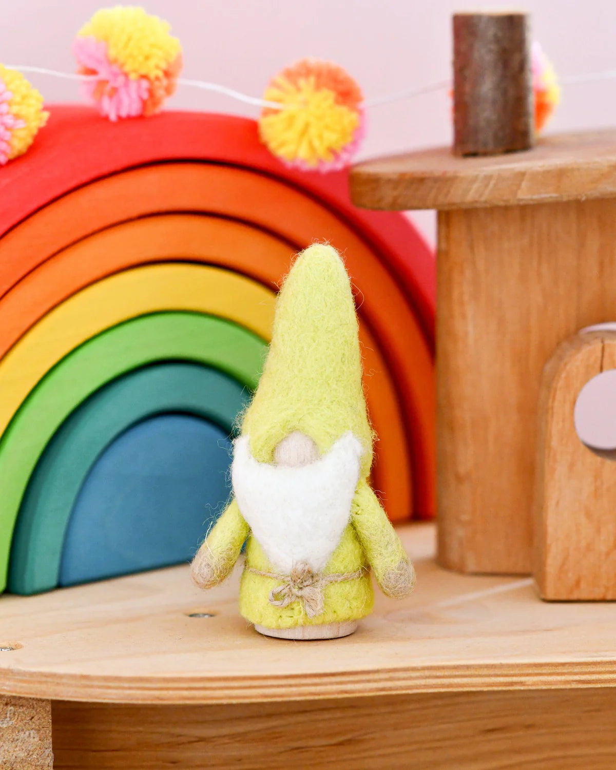 Crafted with exquisite attention to detail, this delightful Lemon Yellow Felt Gnome Peg Doll with long fluffy beard adds a touch of charm and personality to any play space.