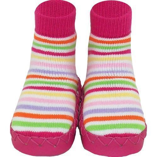 Umhüllen Sie die Füße Ihrer Kinder gemütlich mit der Wärme und dem Komfort einer Socke, kombiniert mit der Zweckmäßigkeit und Sicherheit einer Mokassin-Schuhsohle.
