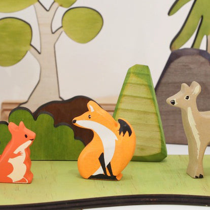 Ein bezaubernder Fuchs. Ein geschmeidiges Holztier, das viele unbegrenzte Spielmöglichkeiten bietet.