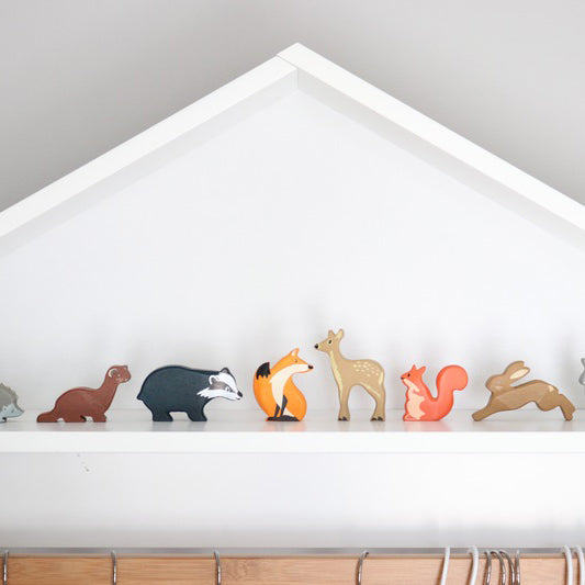 Wir führen Hase, Hase, Igel, Fuchs, Damhirsch, Eichhörnchen, Wiesel und Dachs als einzelne Spielstücke oder als achtteiliges Set.