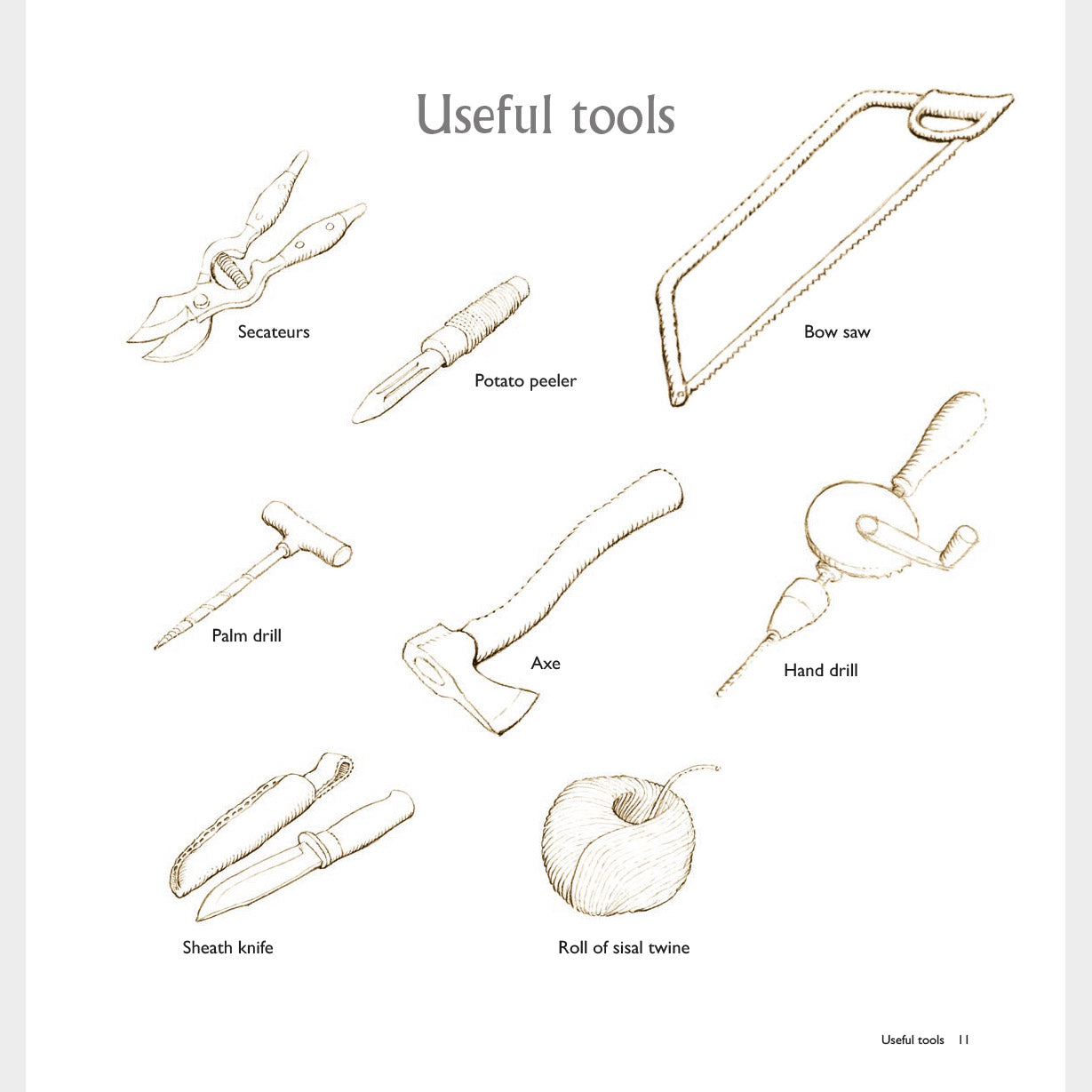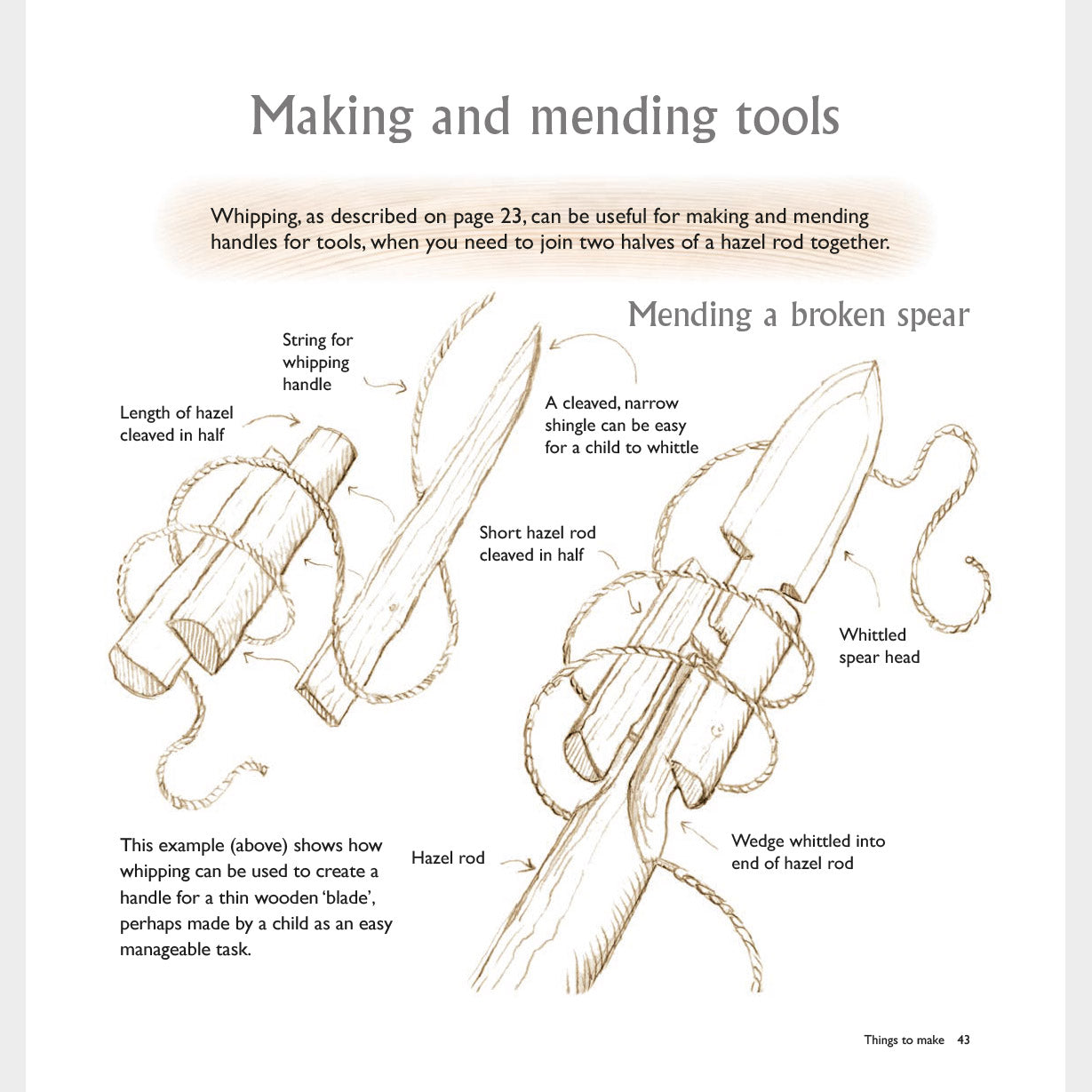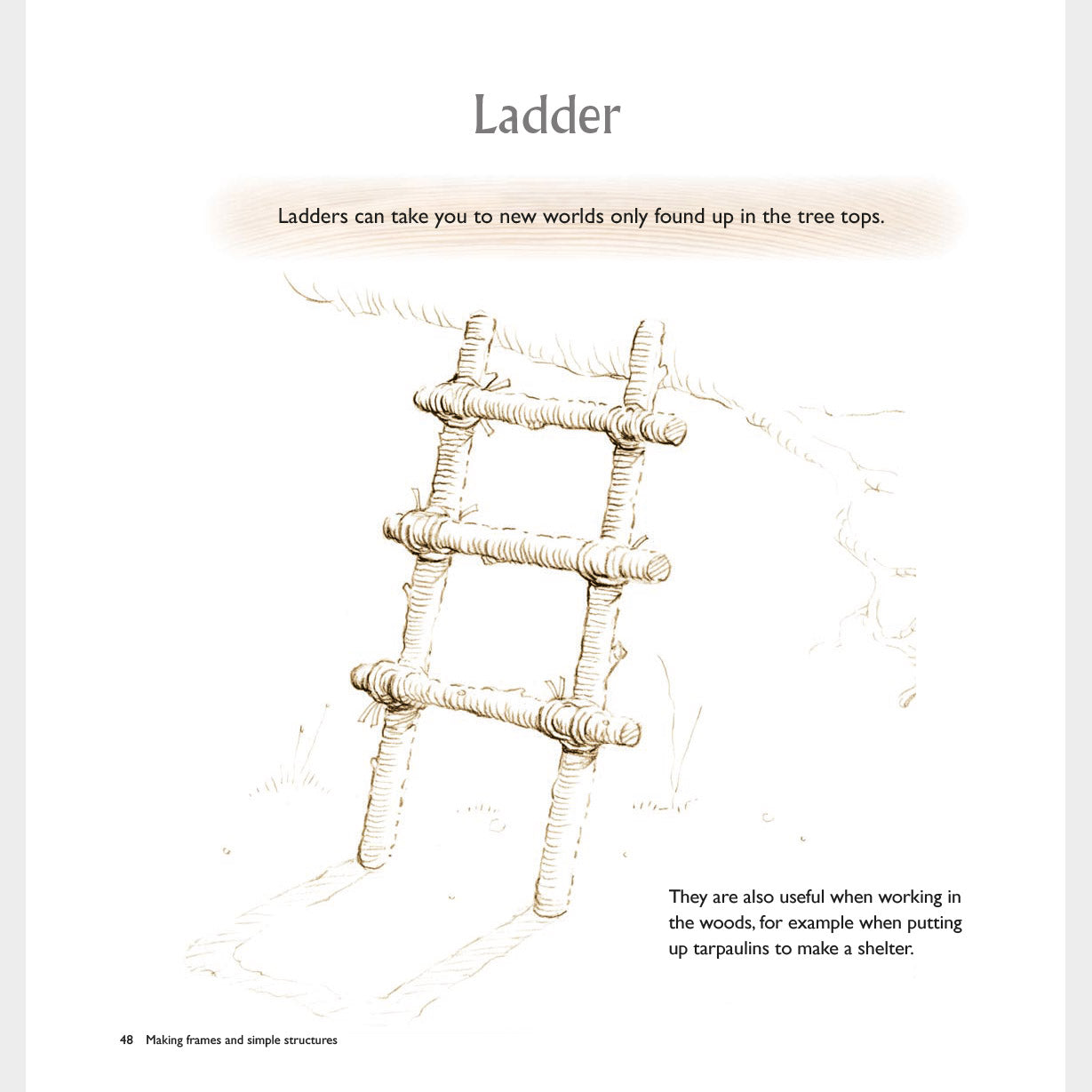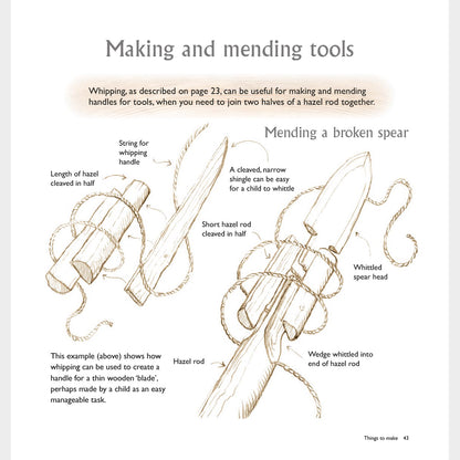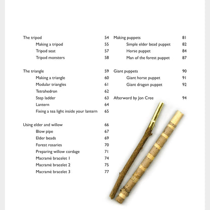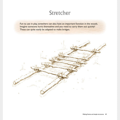 Woodland Crafting guides the reader on making things with wood, in the woods, with a series of beautiful hand-drawn illustrations. It provides the basic knowledge and skills to complete a range of both simple and more advanced craft projects, from functional structures to creative outdoor play forms. You’ll learn how to choose and work your wood effectively, use simple tools, tie knots and develop your own designs to make masks and puppets, night torches and staffs, arrows, jewellery, ladders, shelters, chairs for stargazing and much more. This book has all you need to know to make working with wood fun.