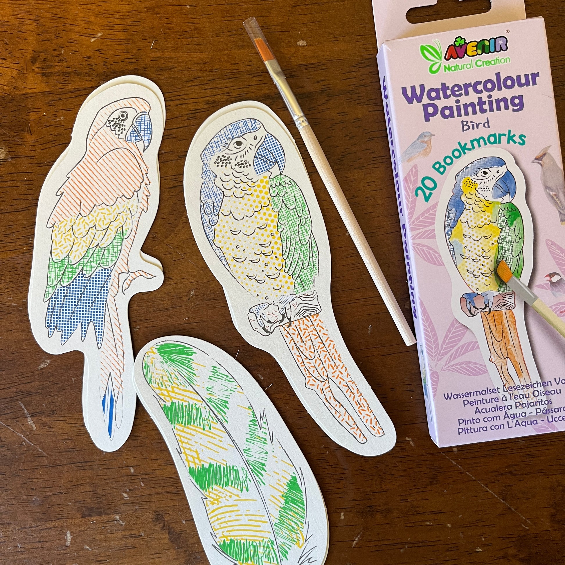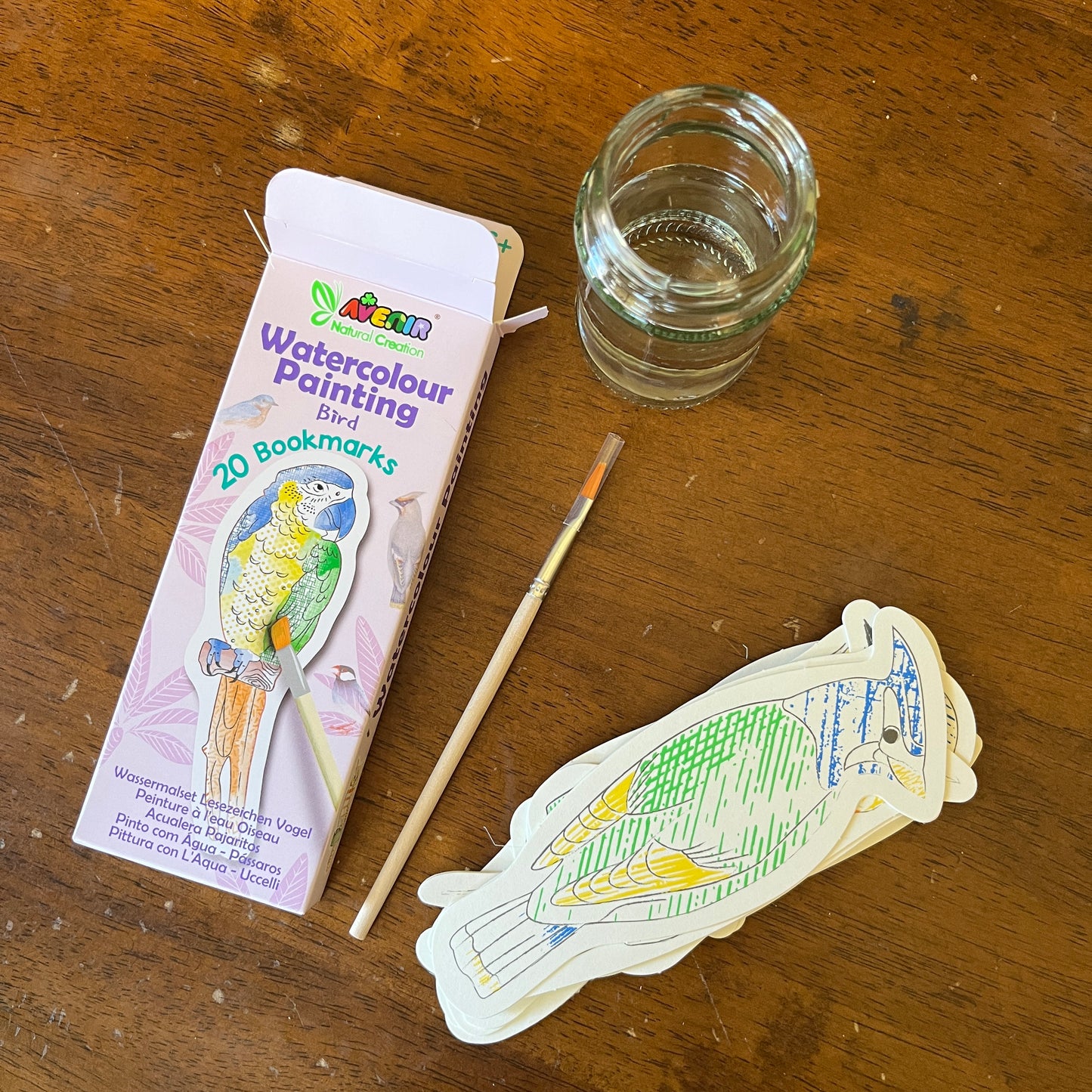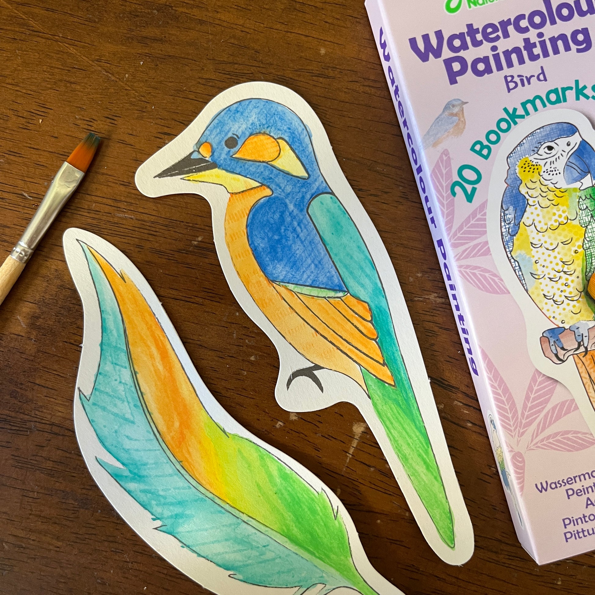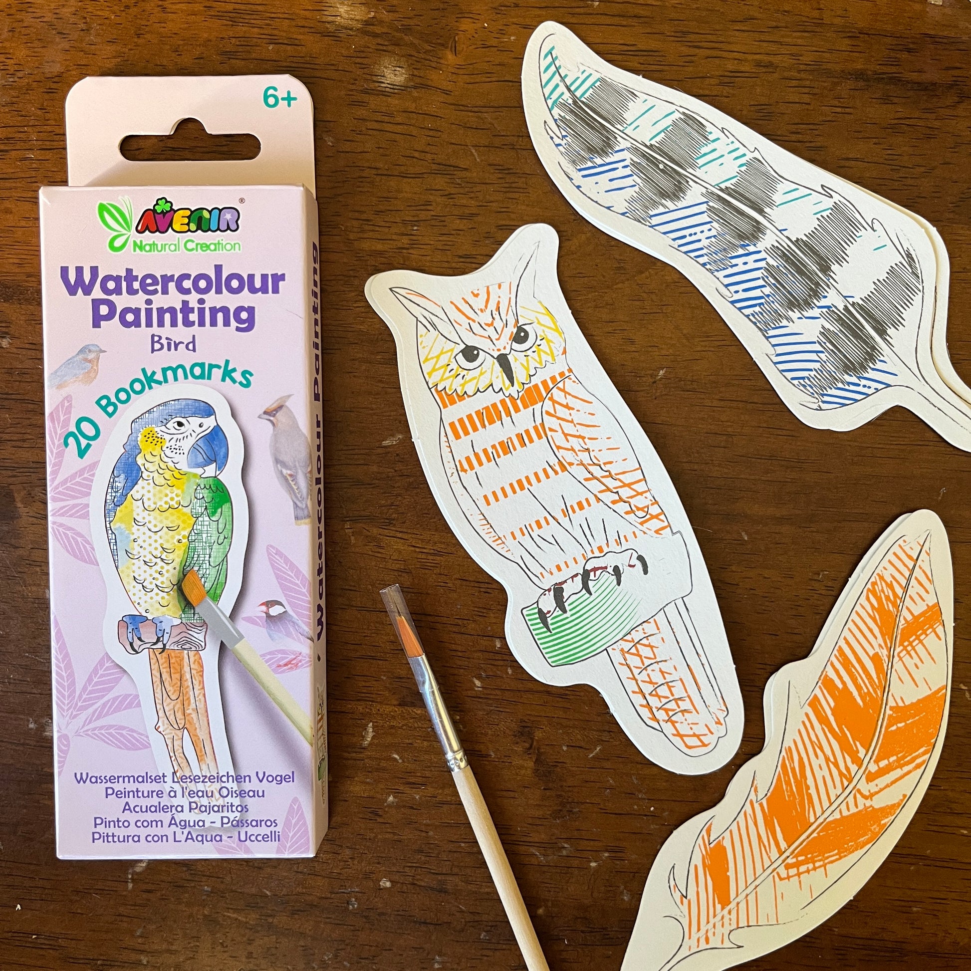The colours are printed in the bookmarks and are released using a wet paint brush. Paint the bookmark and let the colours spread like magic!