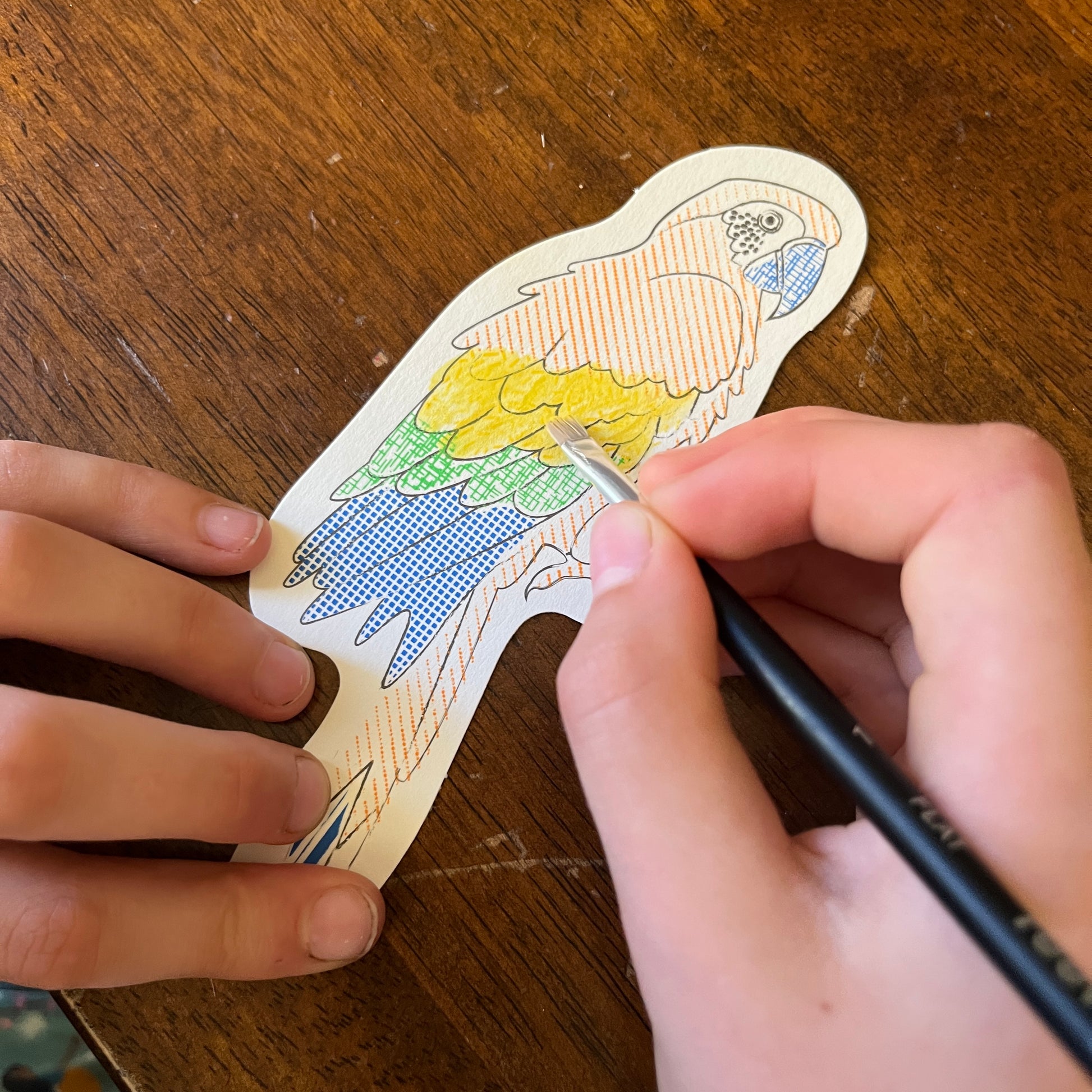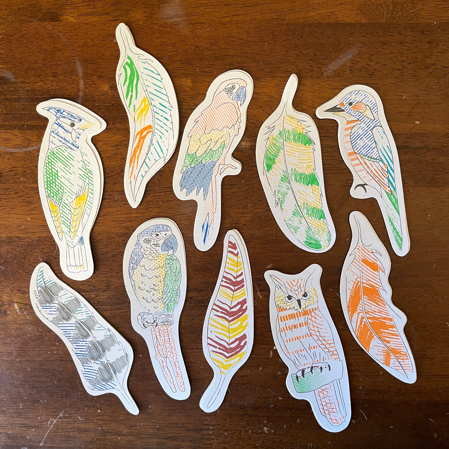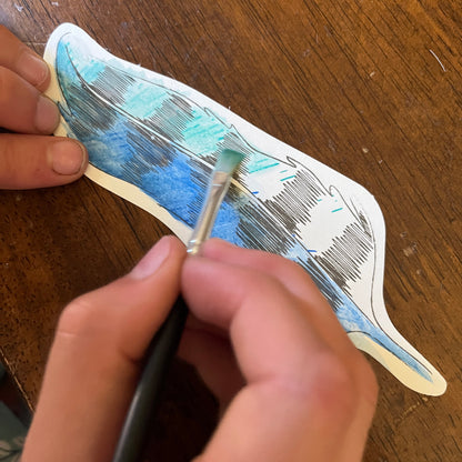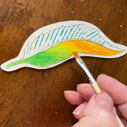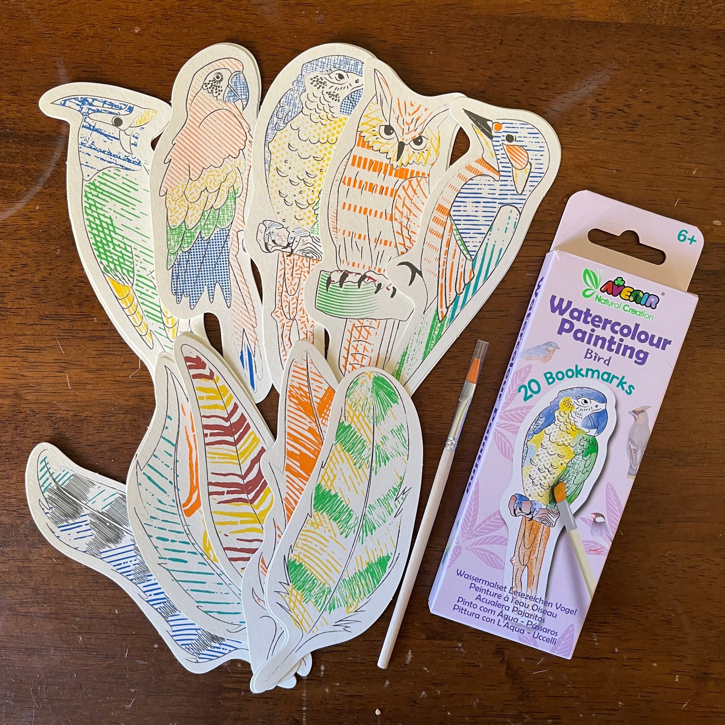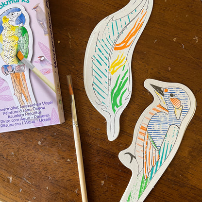 The colours are printed in the bookmarks and are released using a wet paint brush. Paint the bookmark and let the colours spread like magic!