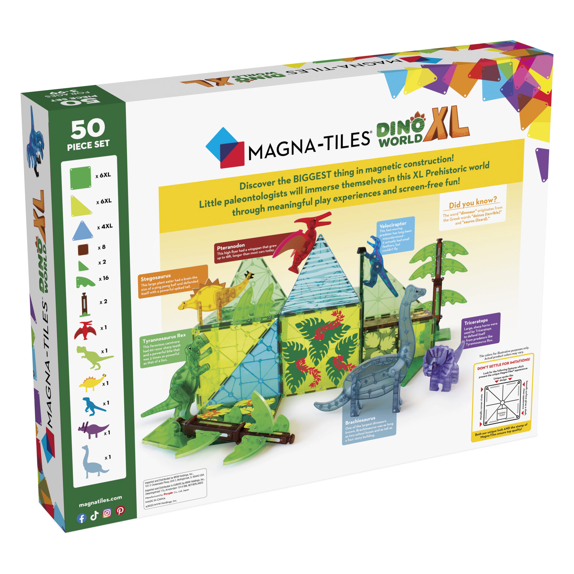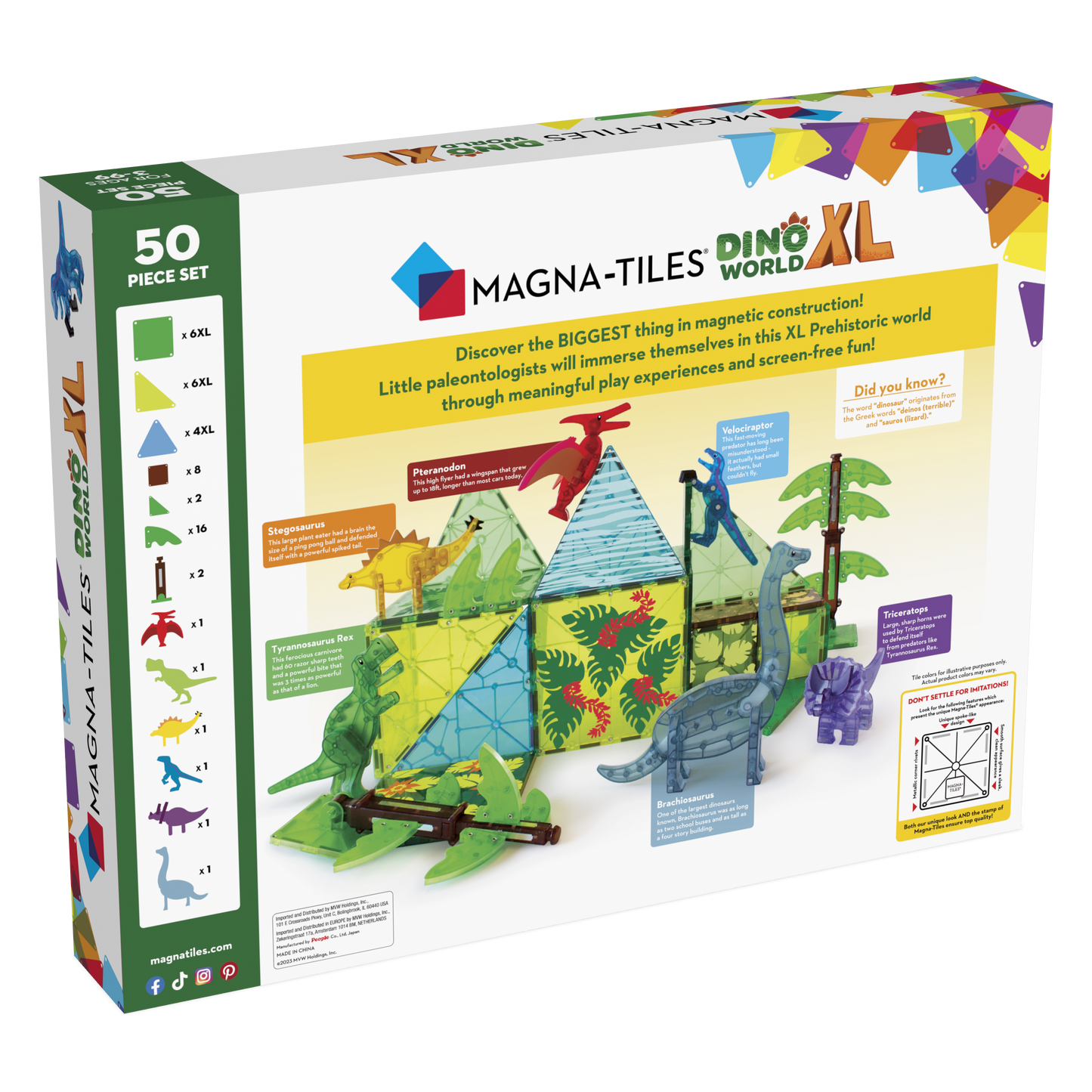 - What Makes It Unique? Features all 6 MAGNA-TILES® dinosaur figures and oversized XL magnetic tiles (4x larger than traditional tiles) for the BIGGEST builds ever… plus new-to-the-world, extendable magnetic trees!