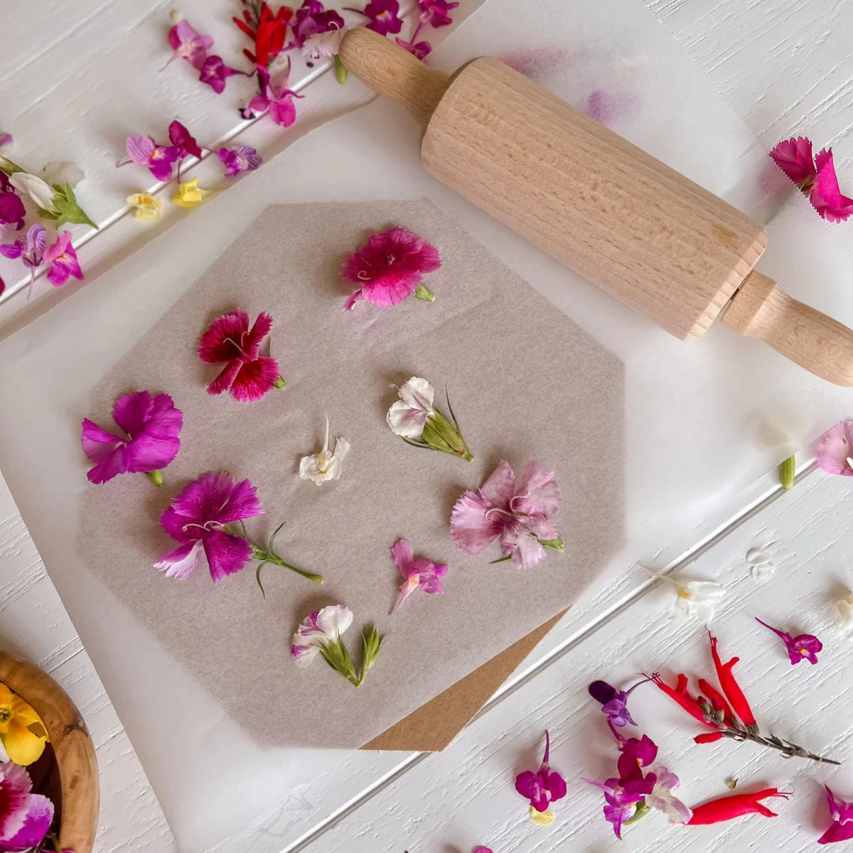 Flowers can be pressed for the sheer joy they bring or once pressed and dried can be used in a variety of natural craft activities. Decorating candles making cards your own bookmarks or enfolding in silk paper for beautiful window scapes.