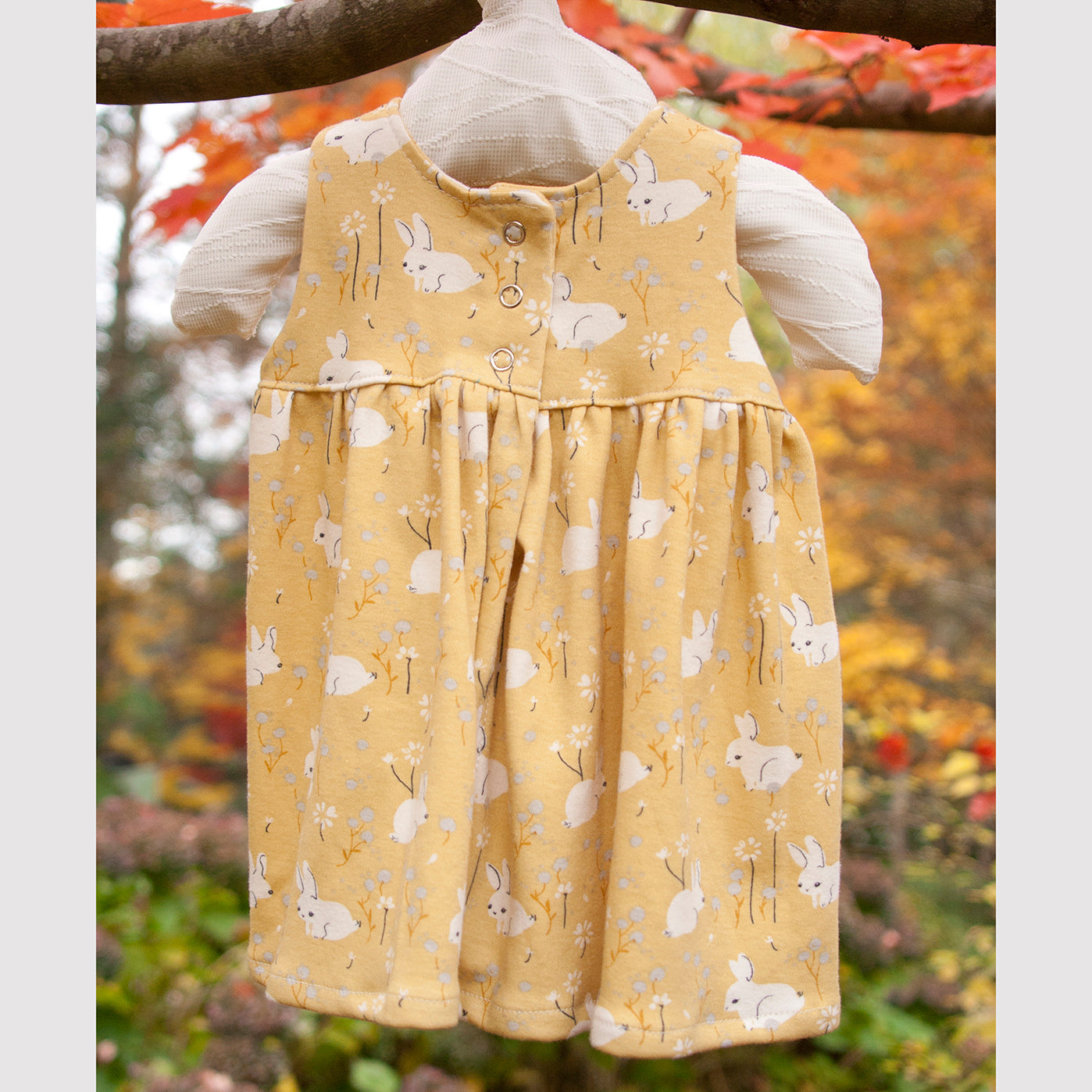 Baby Organic Cotton Dress – Yellow Bunnies - Size 0-3 Months