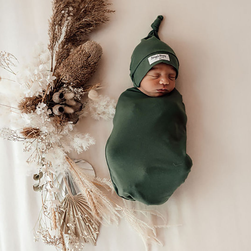 This cotton jersey Snuggle Swaddle is soft and stretchy, it moves and stretches with baby and comes with a matching knotted beanie.