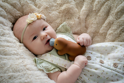 This iconic Aussie animal is sure to make a splash during a baby's playtime. The design features a little bell that rattles inside to delight, and its lovely bill provides a soothing place to relieve teething gums.