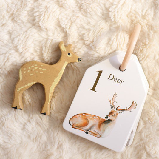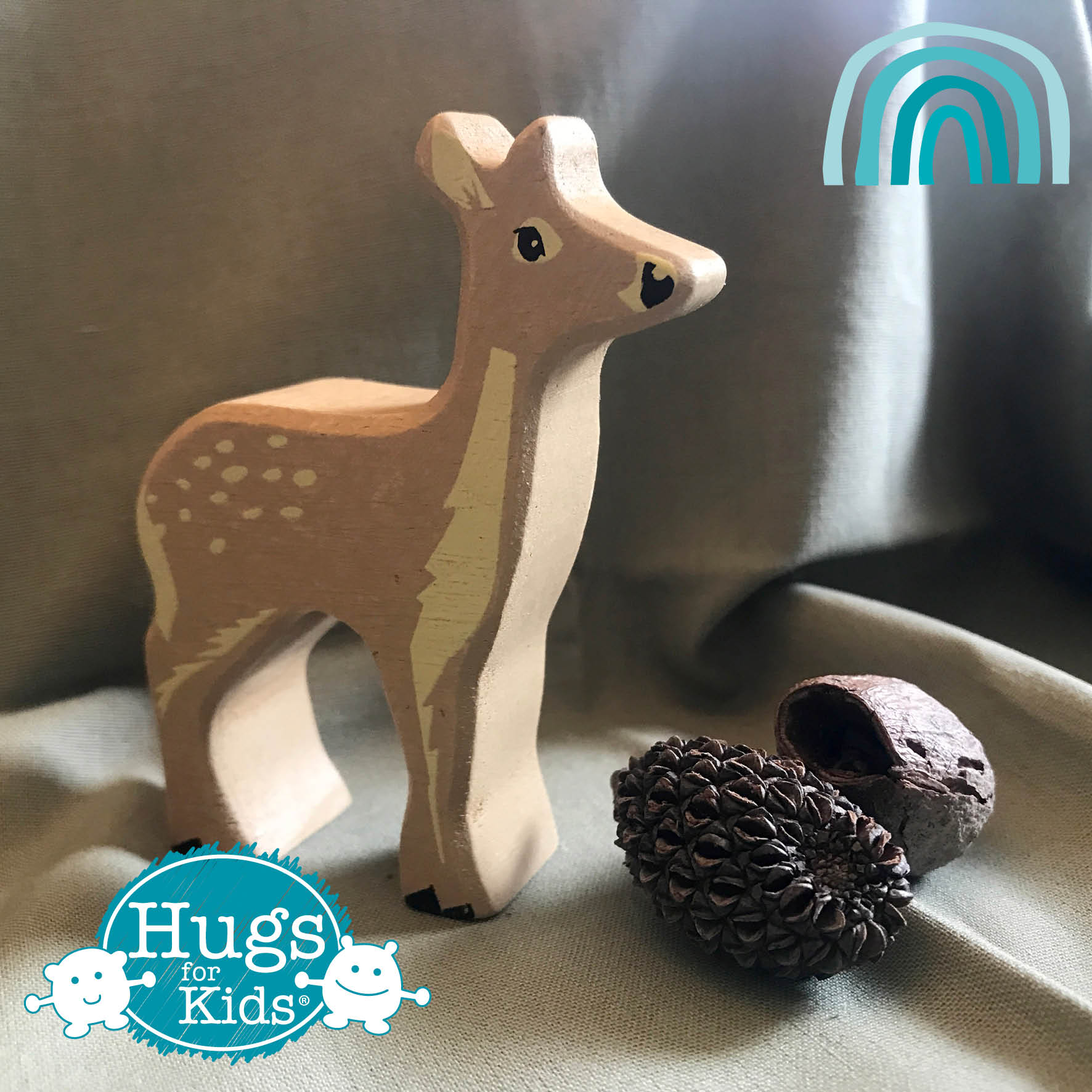 An adorable Fallow Deer. A smooth wooden animal that provides lots of open-ended play options.
