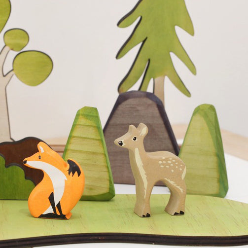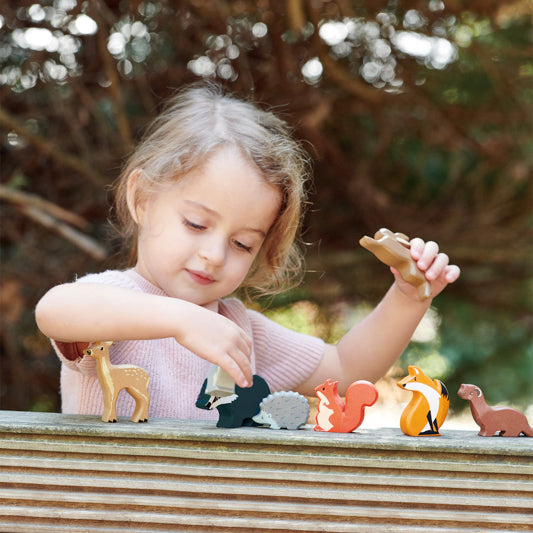 We stock the Rabbit, Hare, Hedgehog, Fox, Fallow Deer, Red Squirrel, Weasel, Badger as individual play pieces or as an eight-piece set,