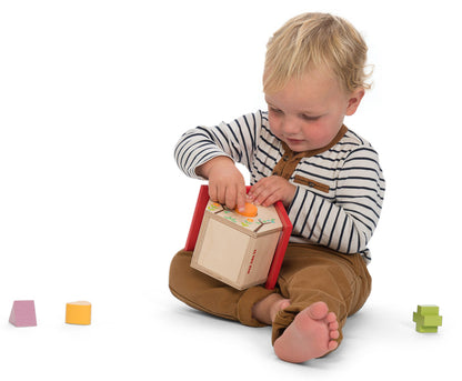 A gorgeous red roof wooden home with matching wooden shapes to help teach children how to sort shapes and work on their fine motor skills. Comes with six assorted shapes. Helps to develop pre-reading skills through shape recognition and matching.