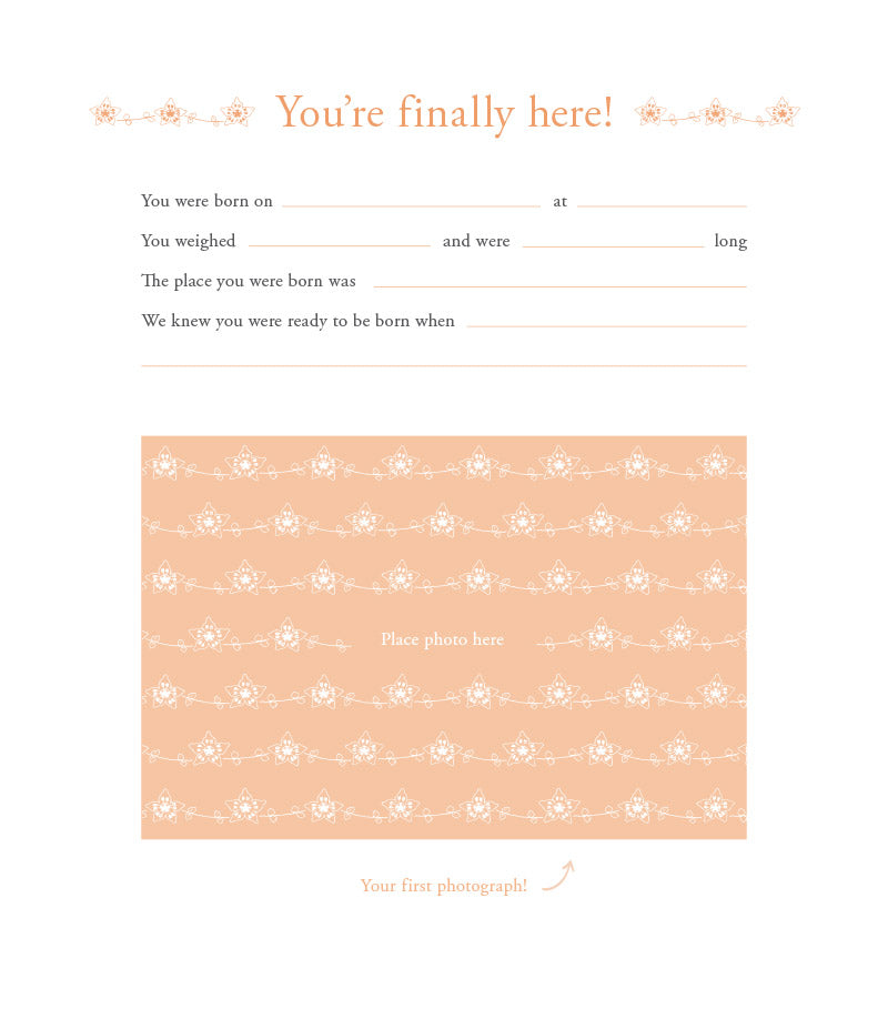 -- Generous space for precious photographs to capture important moments – coming home, first bath, first birthday and Christmas