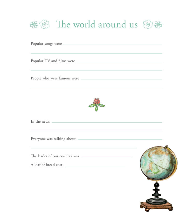 -- Easy to complete, thoughtful and open prompts to encourage parents to record their baby's unique story in their own words