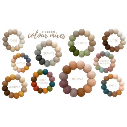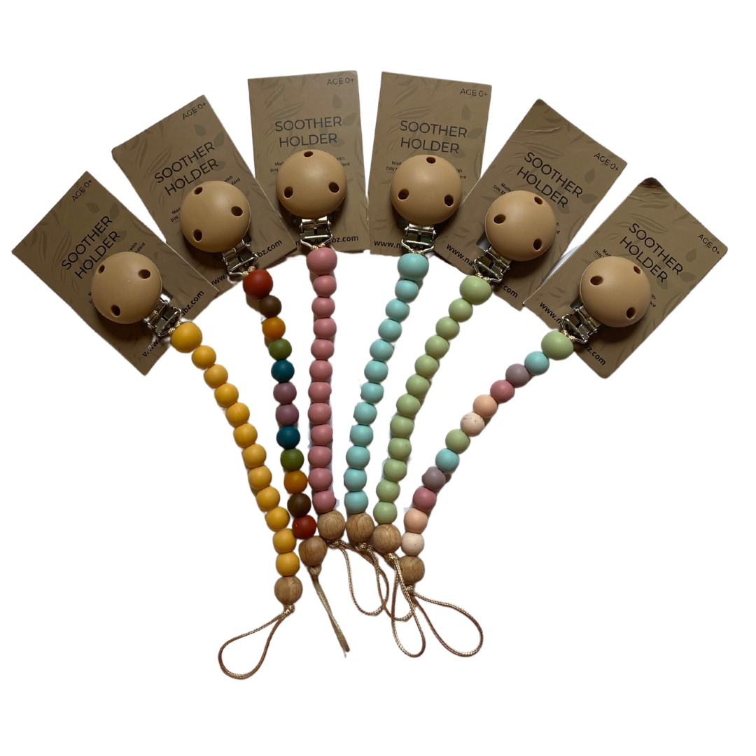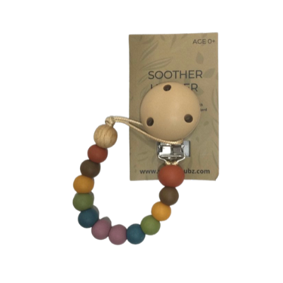 The ZURI dummy clip features a length of soft, flexible silicone beads that come available in a range of colour options.